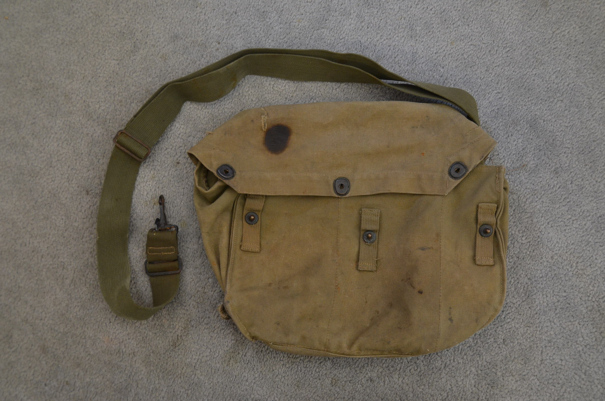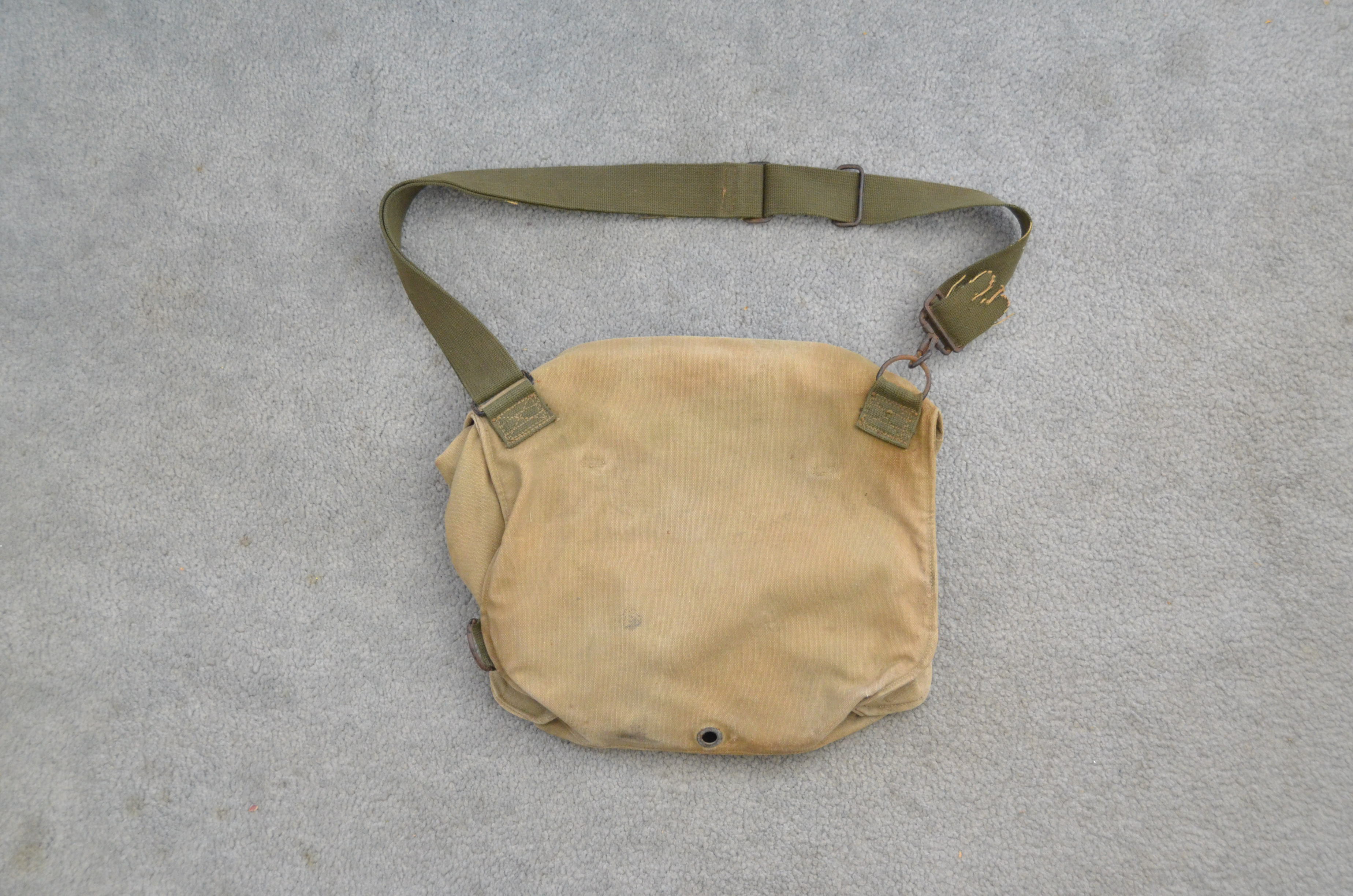 SOLD - WW2 gas mask bag, kidney style #1, with field modified strap