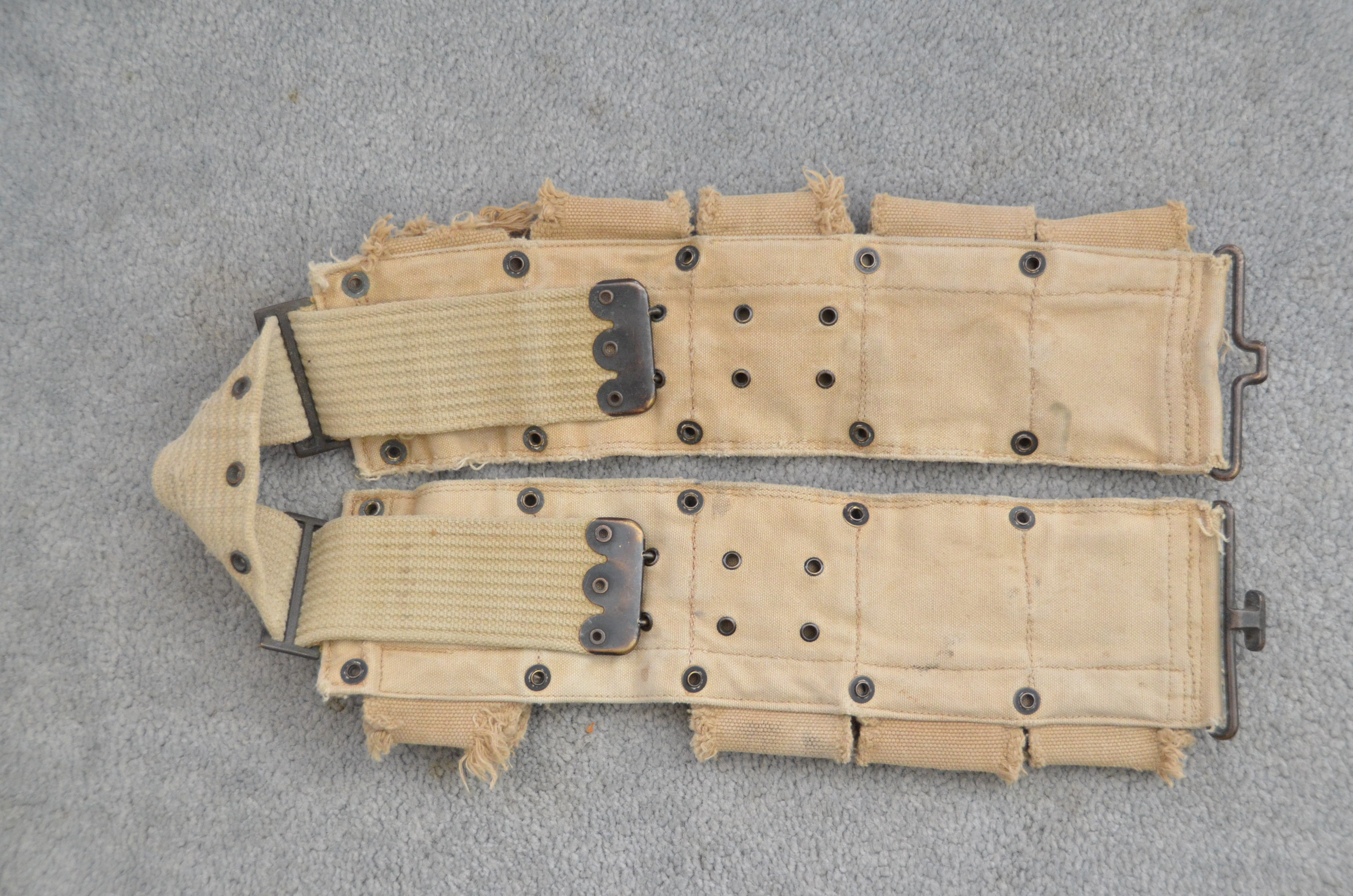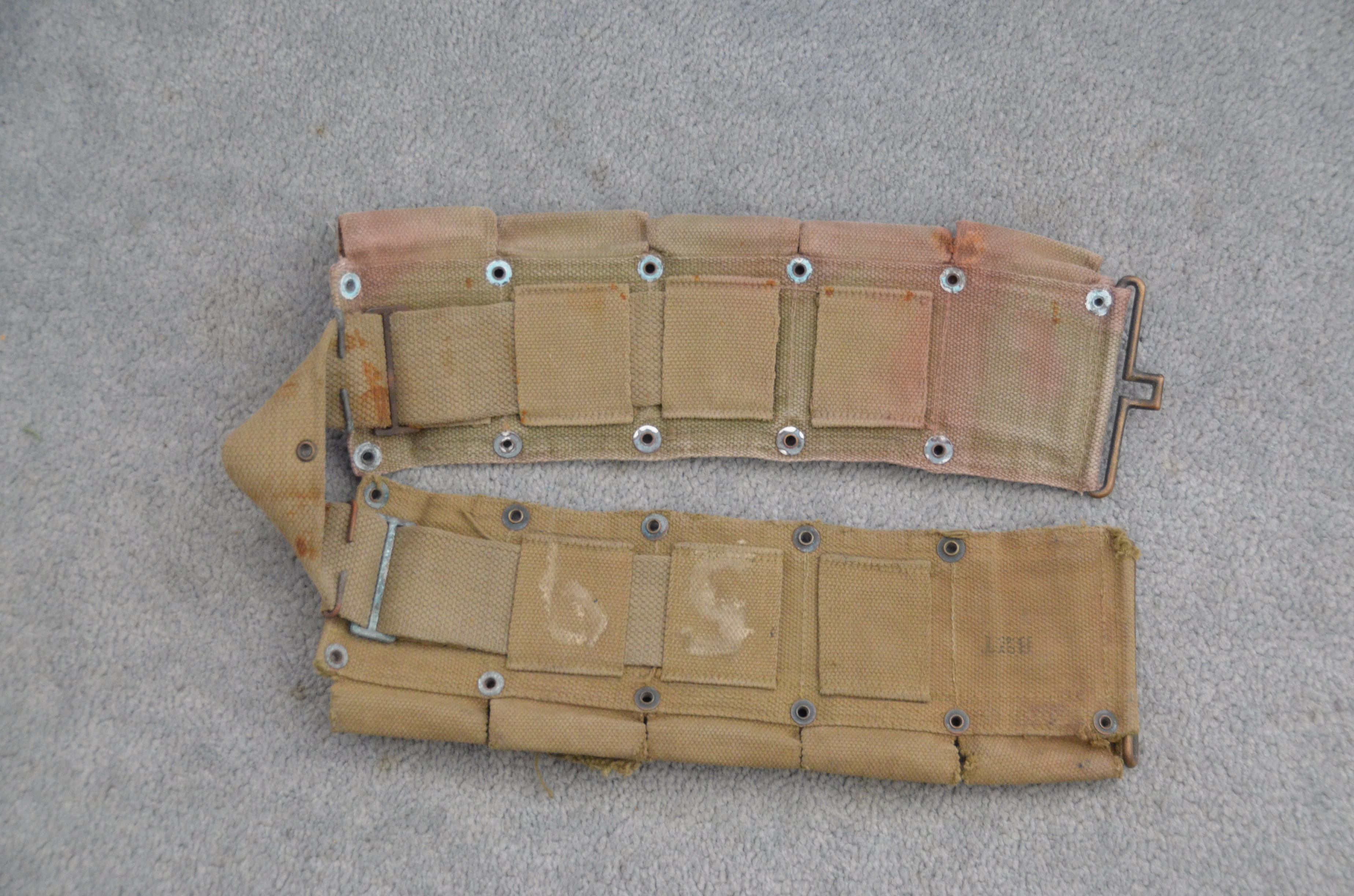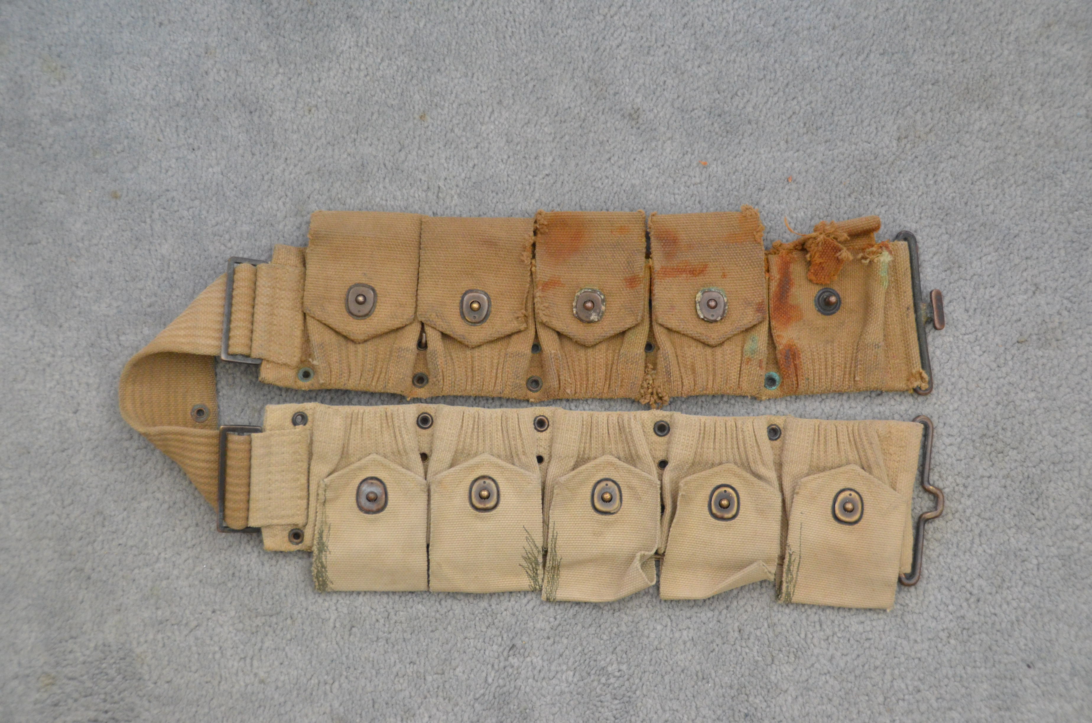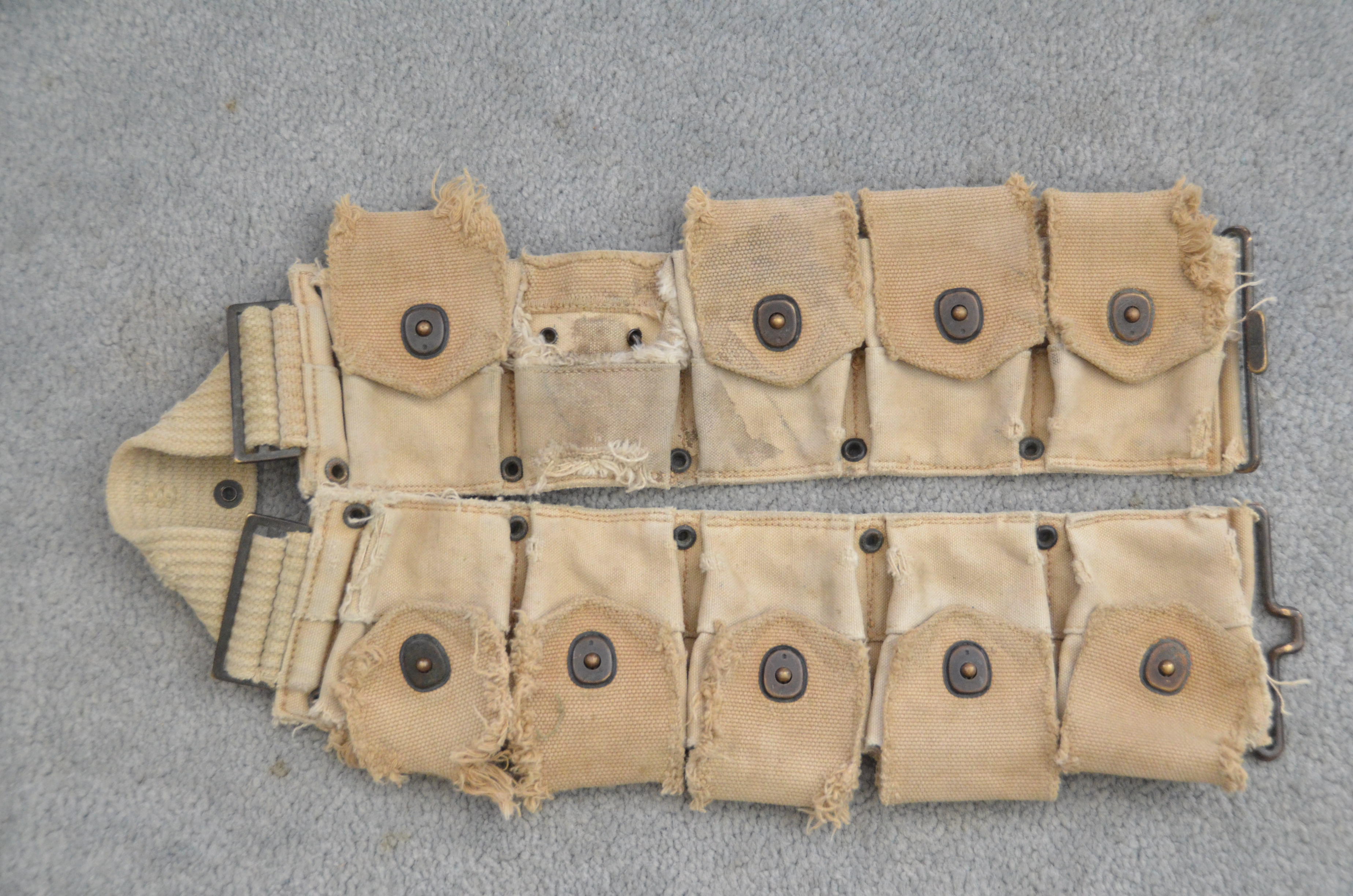 SOLD - WW1 cartridge belt, matched, somebody cut out a pocket for a baton.