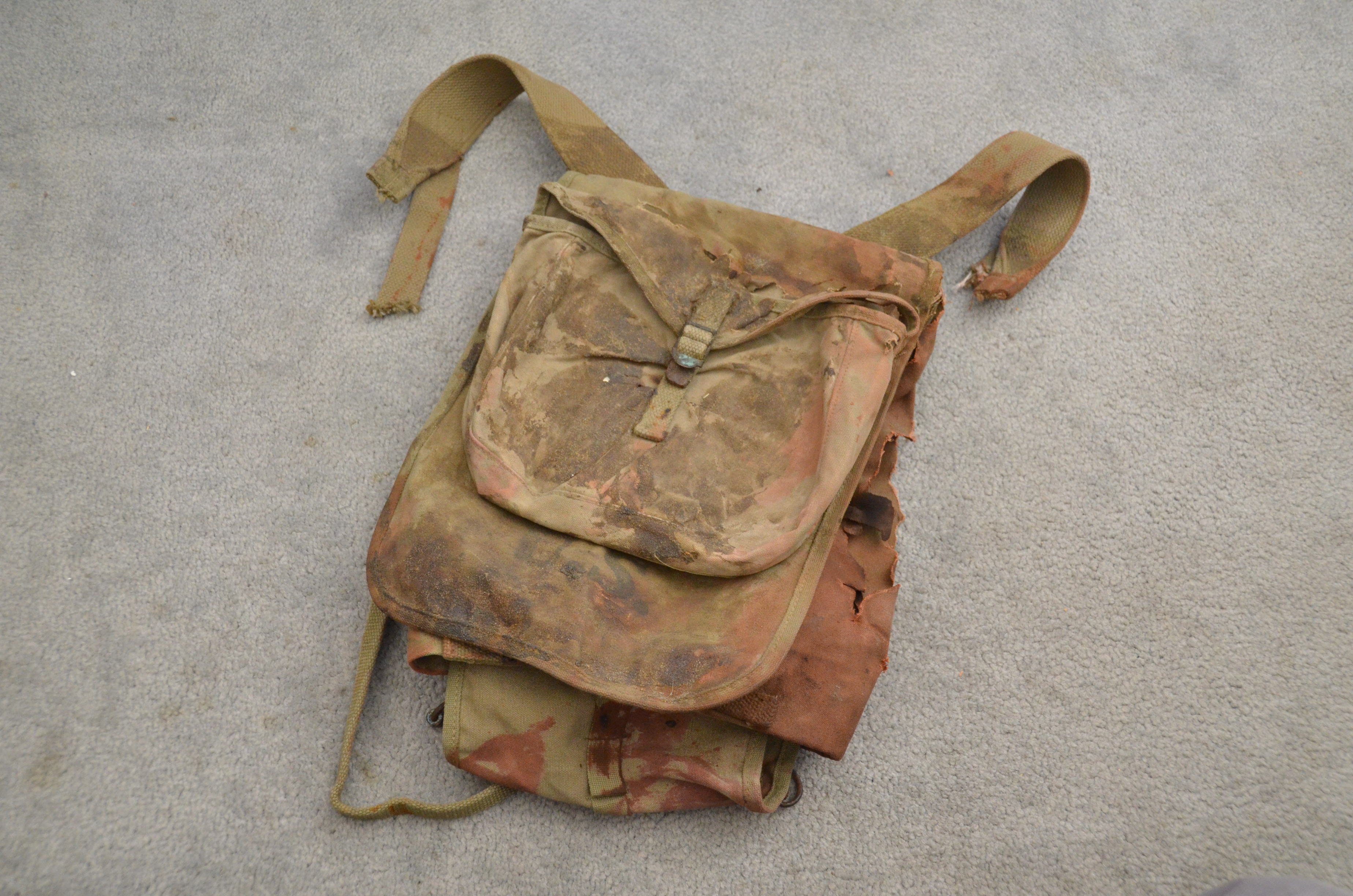 SOLD - Haversacks #3 and #4 used in Saving Private Ryan, blown to shit, sold together
