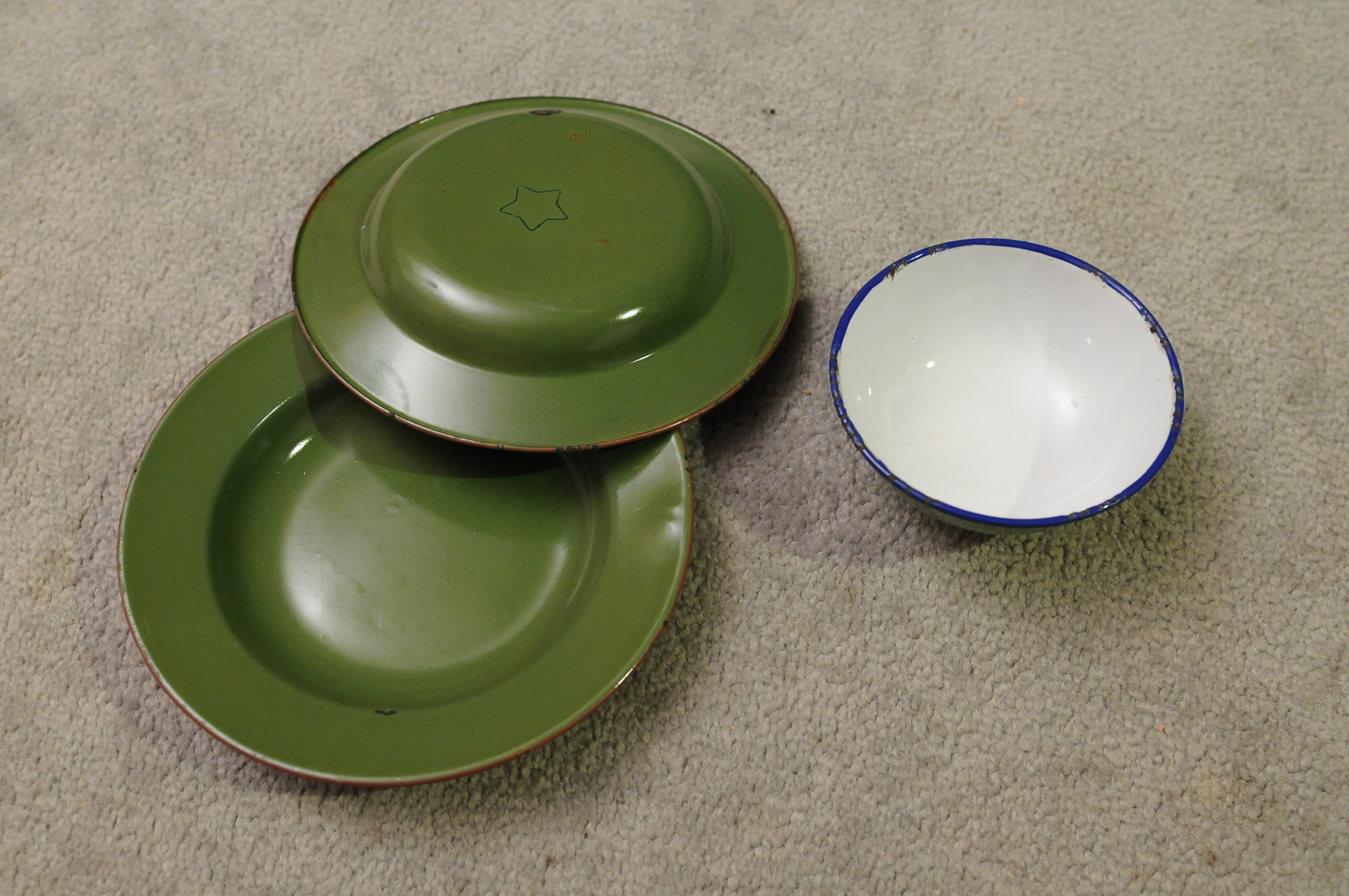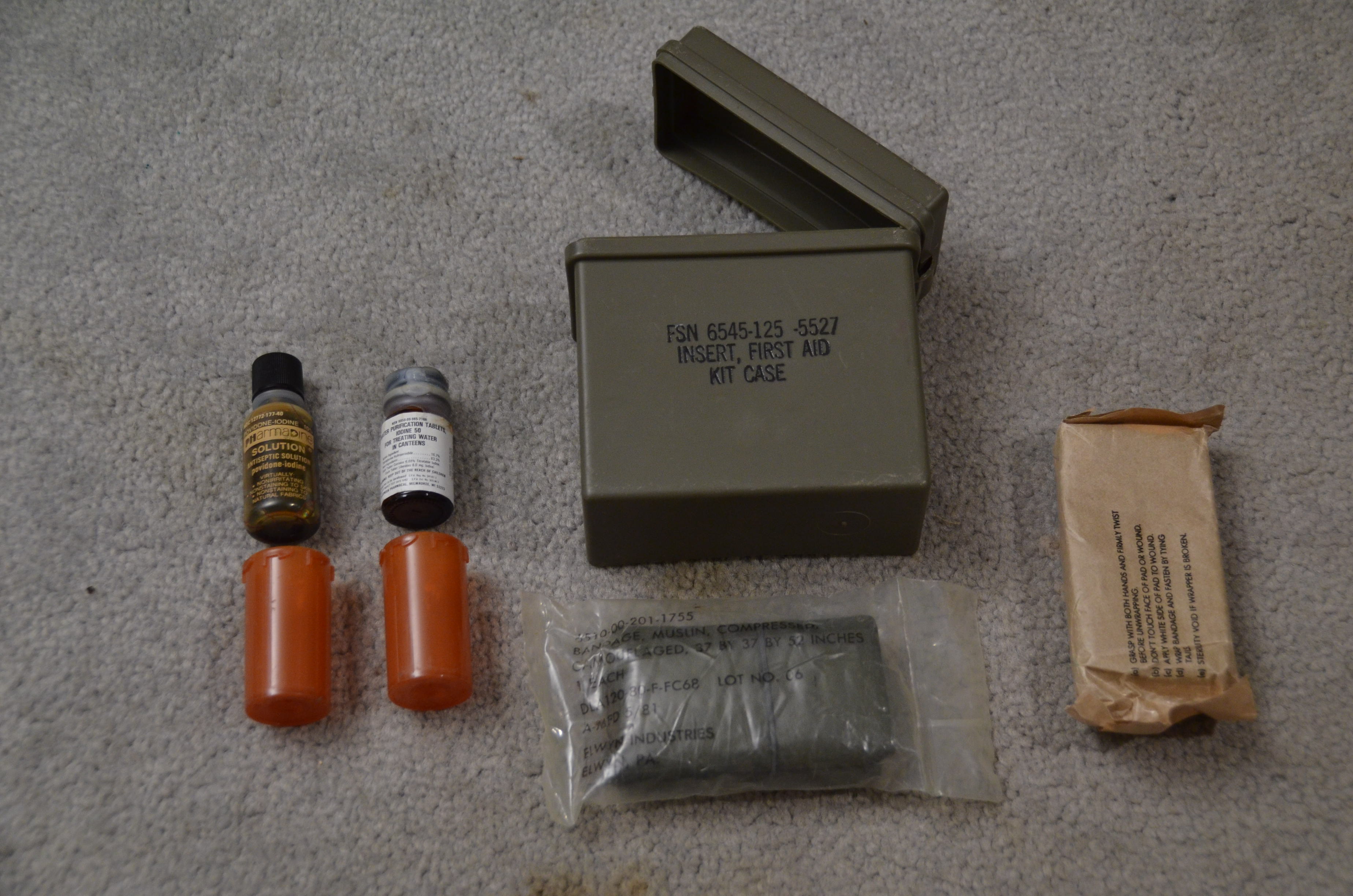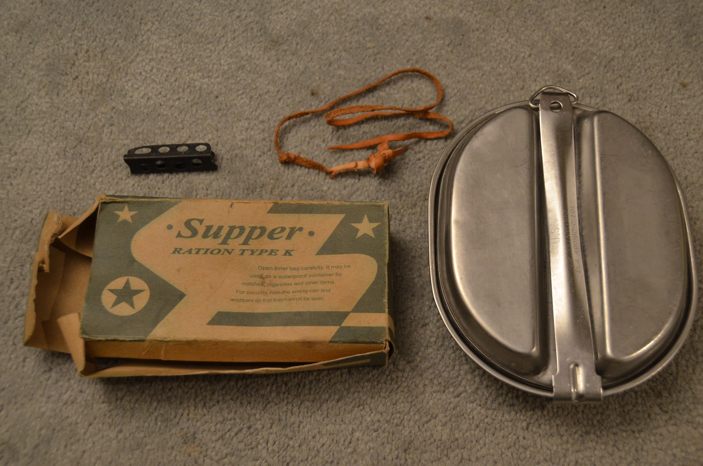 SOLD - Random junk lot #4, opened k-ration box, stripper clip, mess kit, leather lace