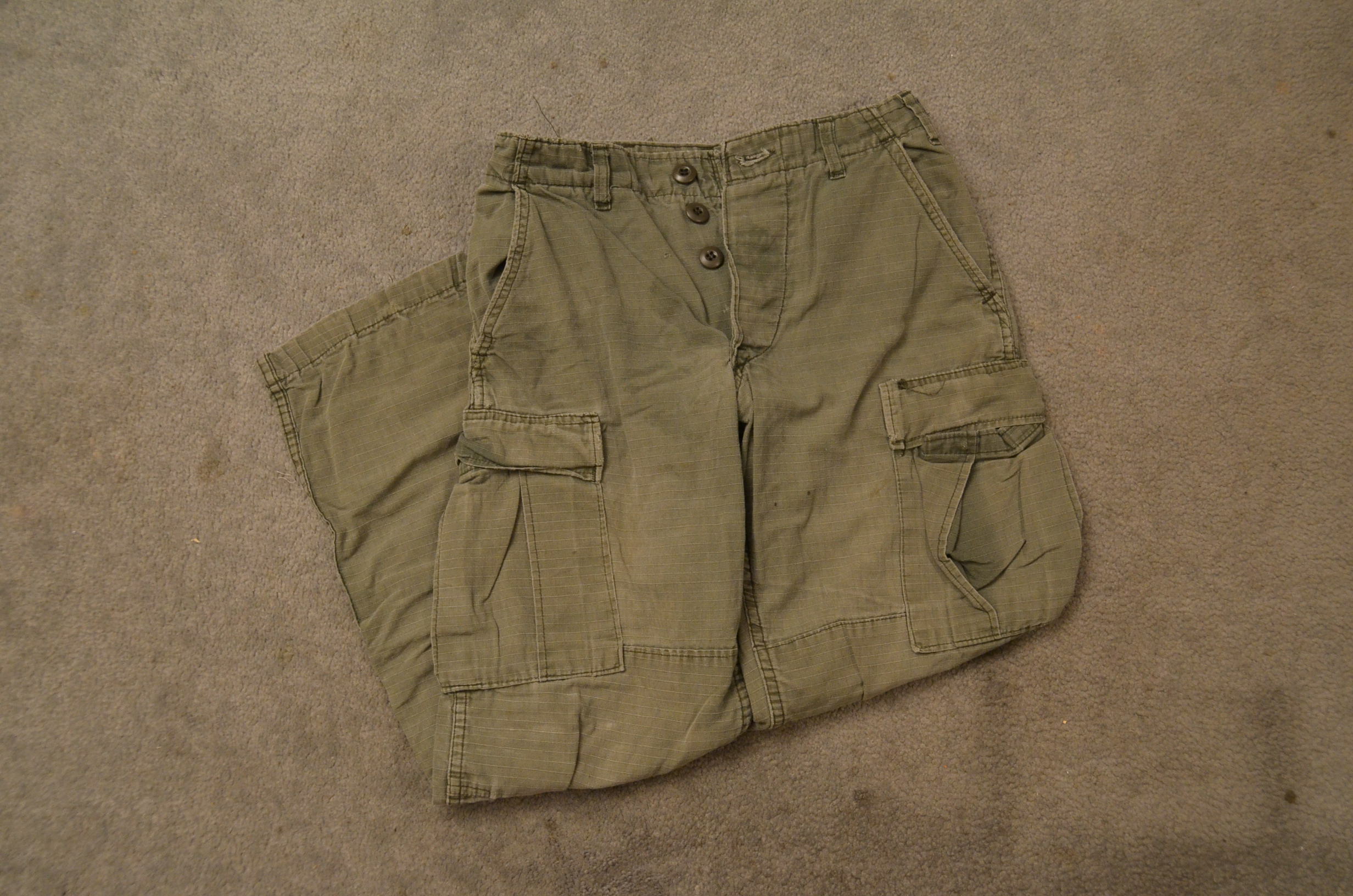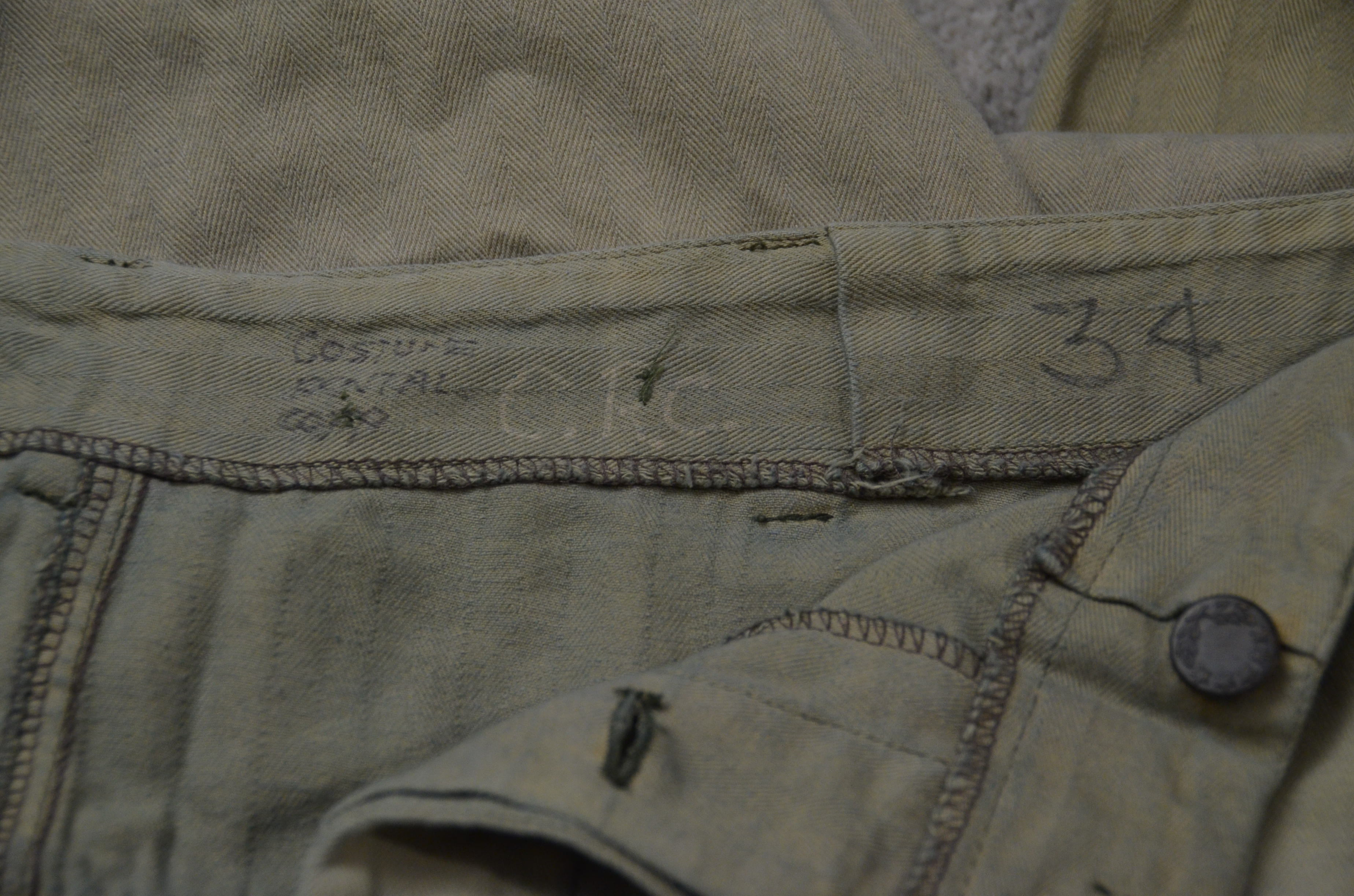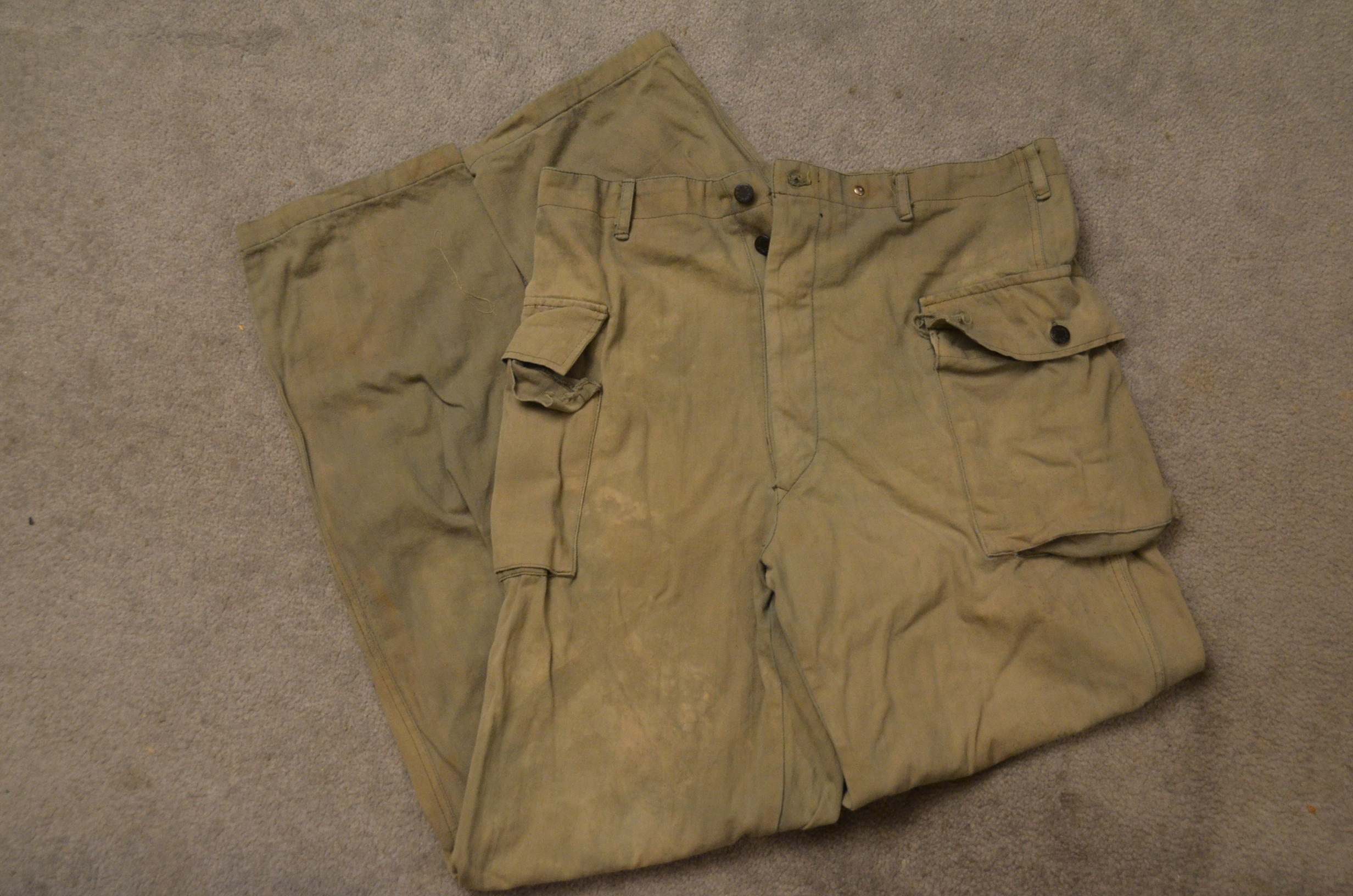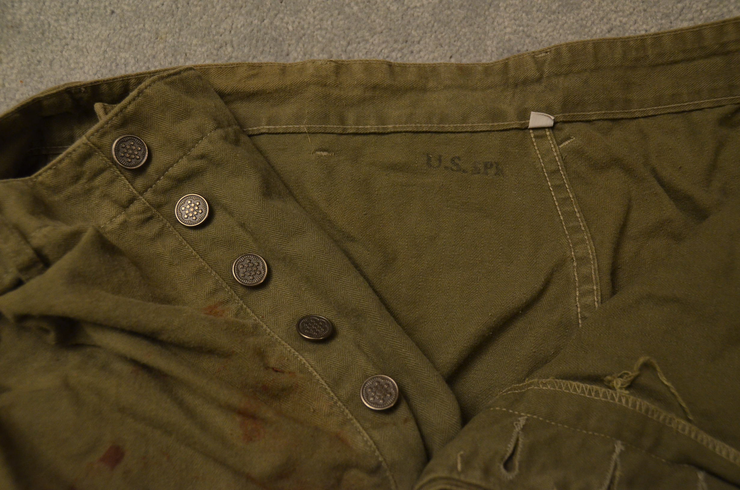 SOLD - WW2 original HBT trousers #1, light shade, used in Saving Private Ryan, size 34 waist