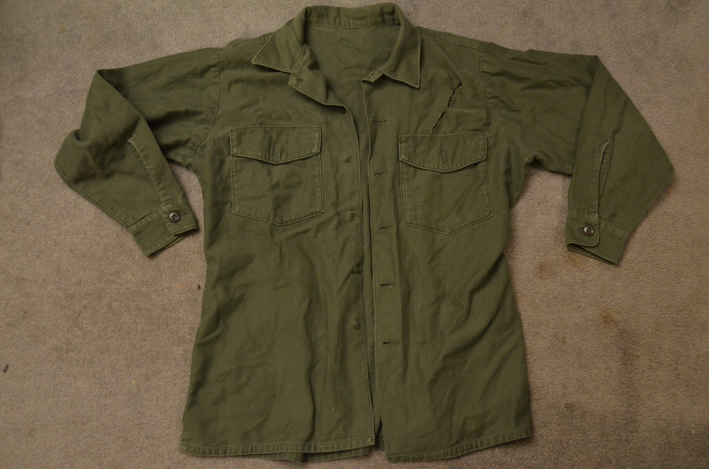 SOLD - Saving Private Ryan wool shirt #8, original, size 16 1/2 with clear markings and injured arm
