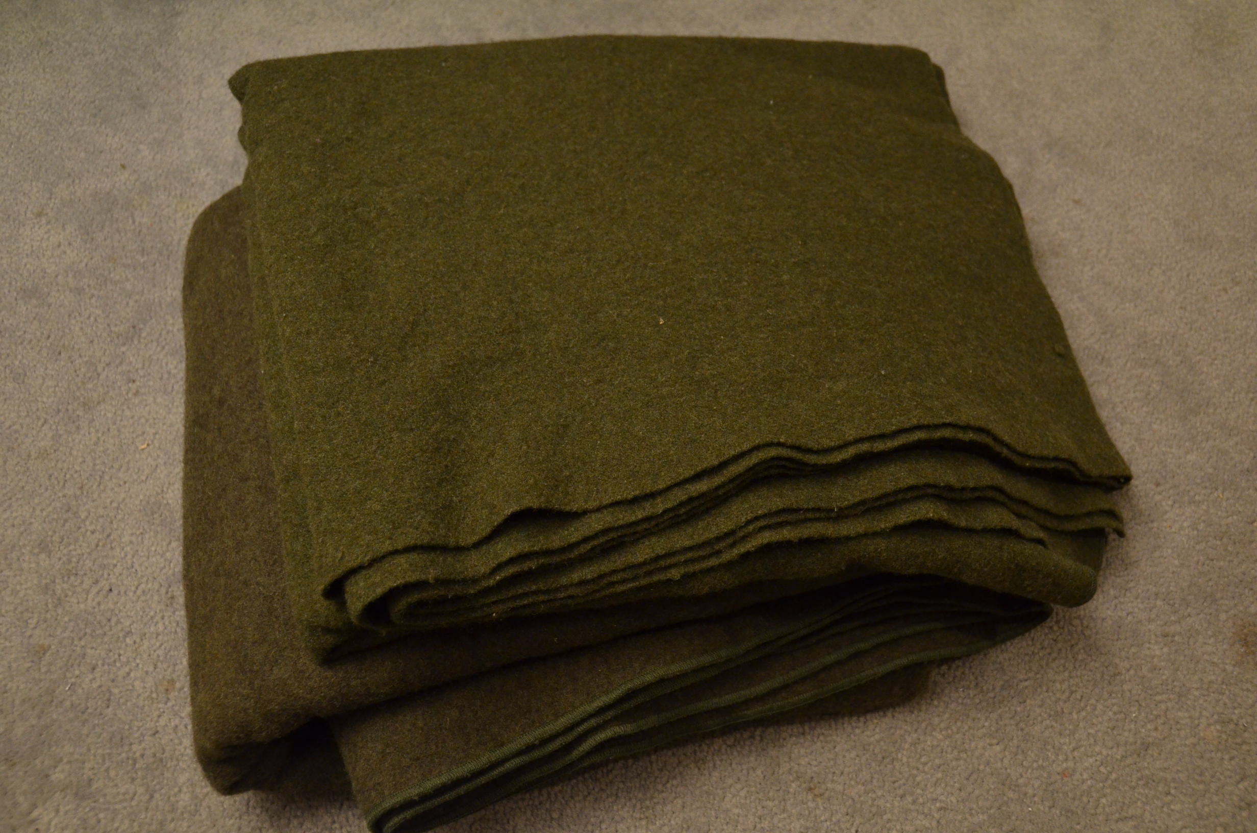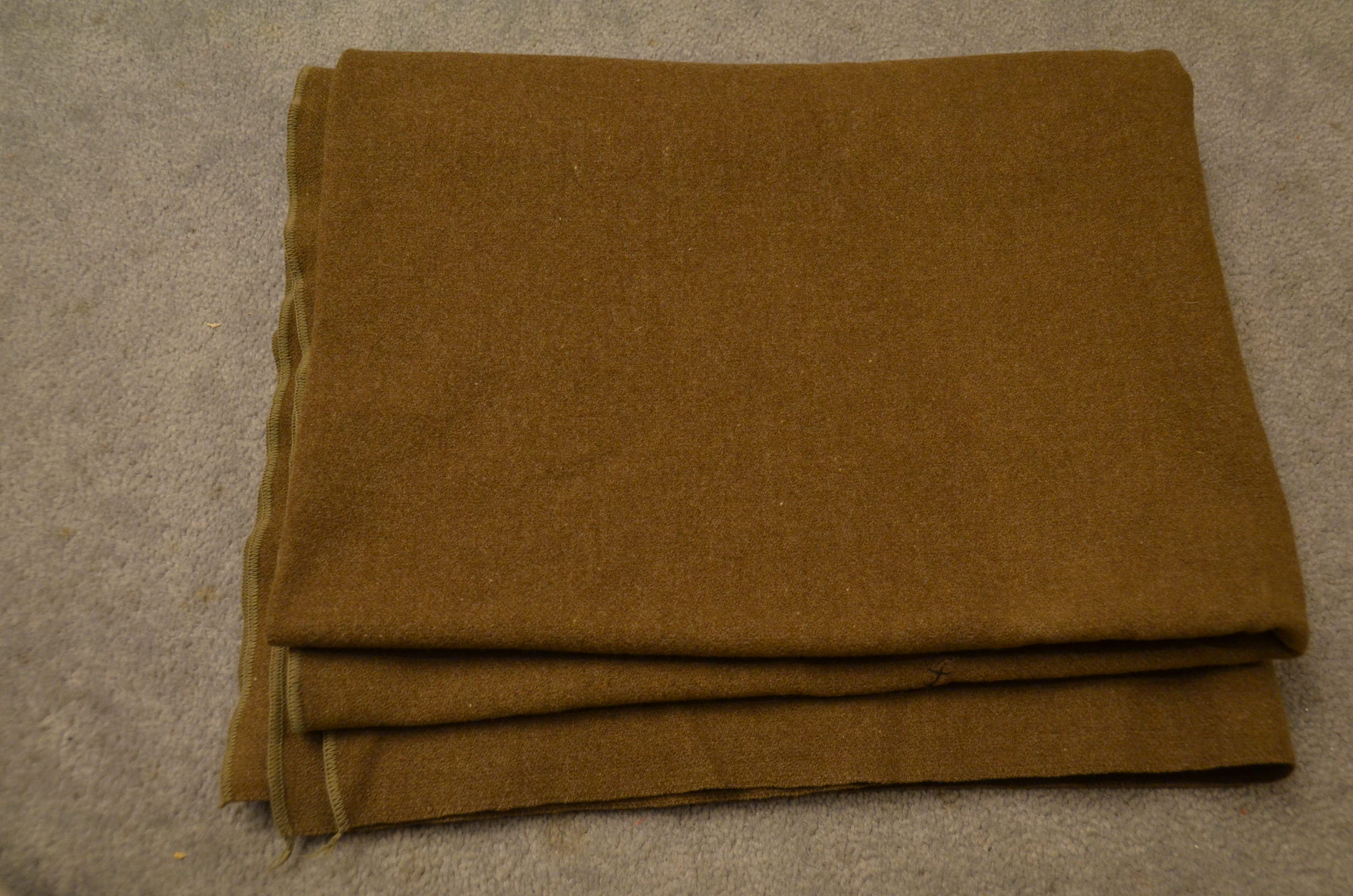 SOLD - WW2 wool blanket, re-enacting grade, tag faded and repaired