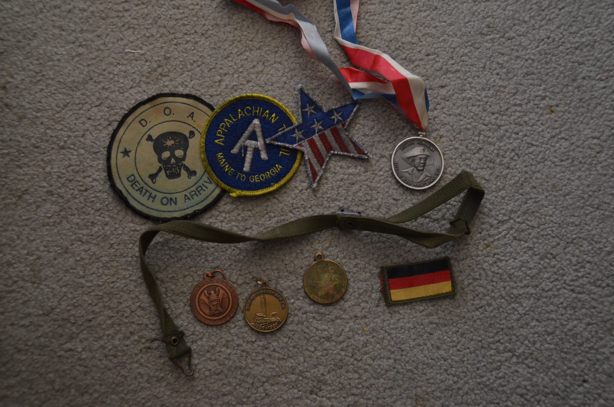SOLD - Random junk lot #3, patches, medals, chin strap