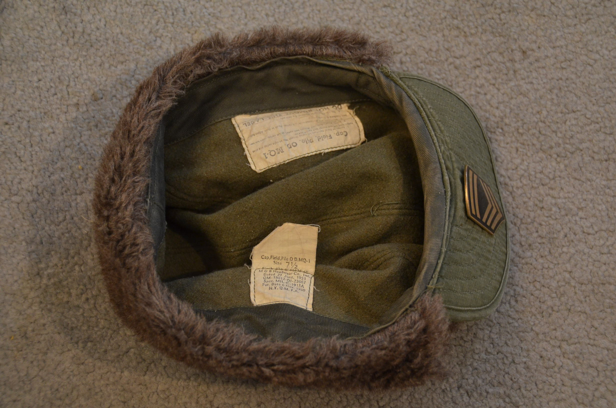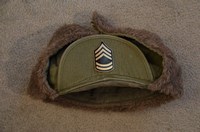 SOLD - Korean war M1950 pile cap, used, with sgtfc. insignia, size 7 1/2