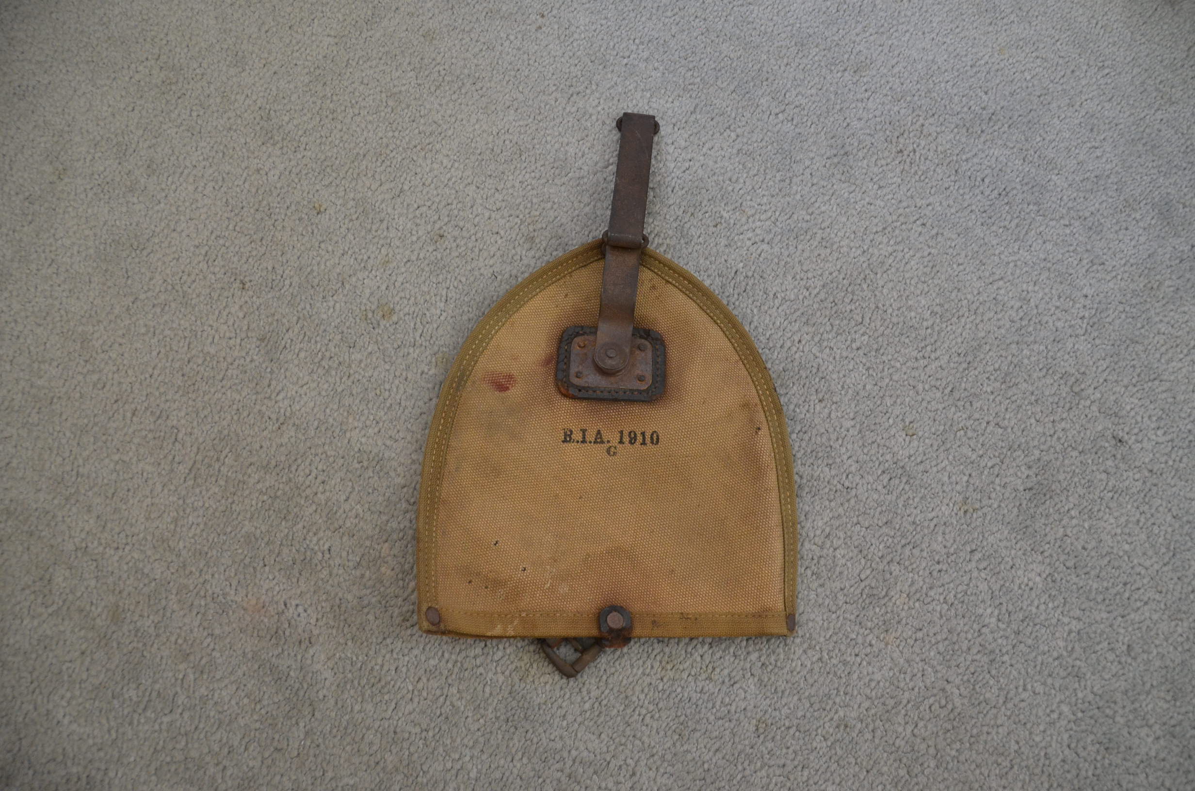 SOLD - Pre-WW1 krag shovel carrier, missing leather strap, clamp rusted, marked RIA 1910