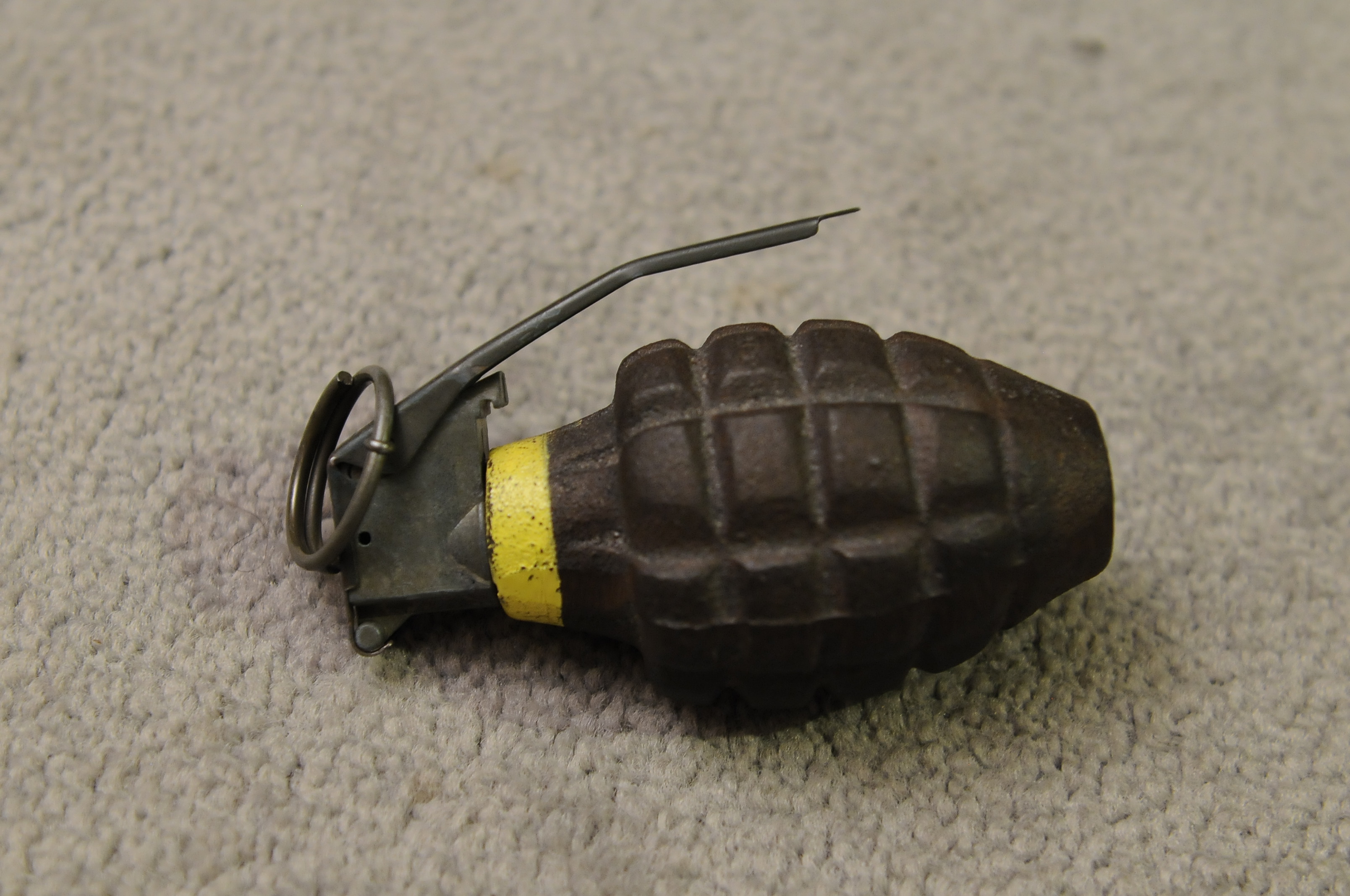 SOLD - WW2 style pineapple hand grenade, practice body, includes working spring kit