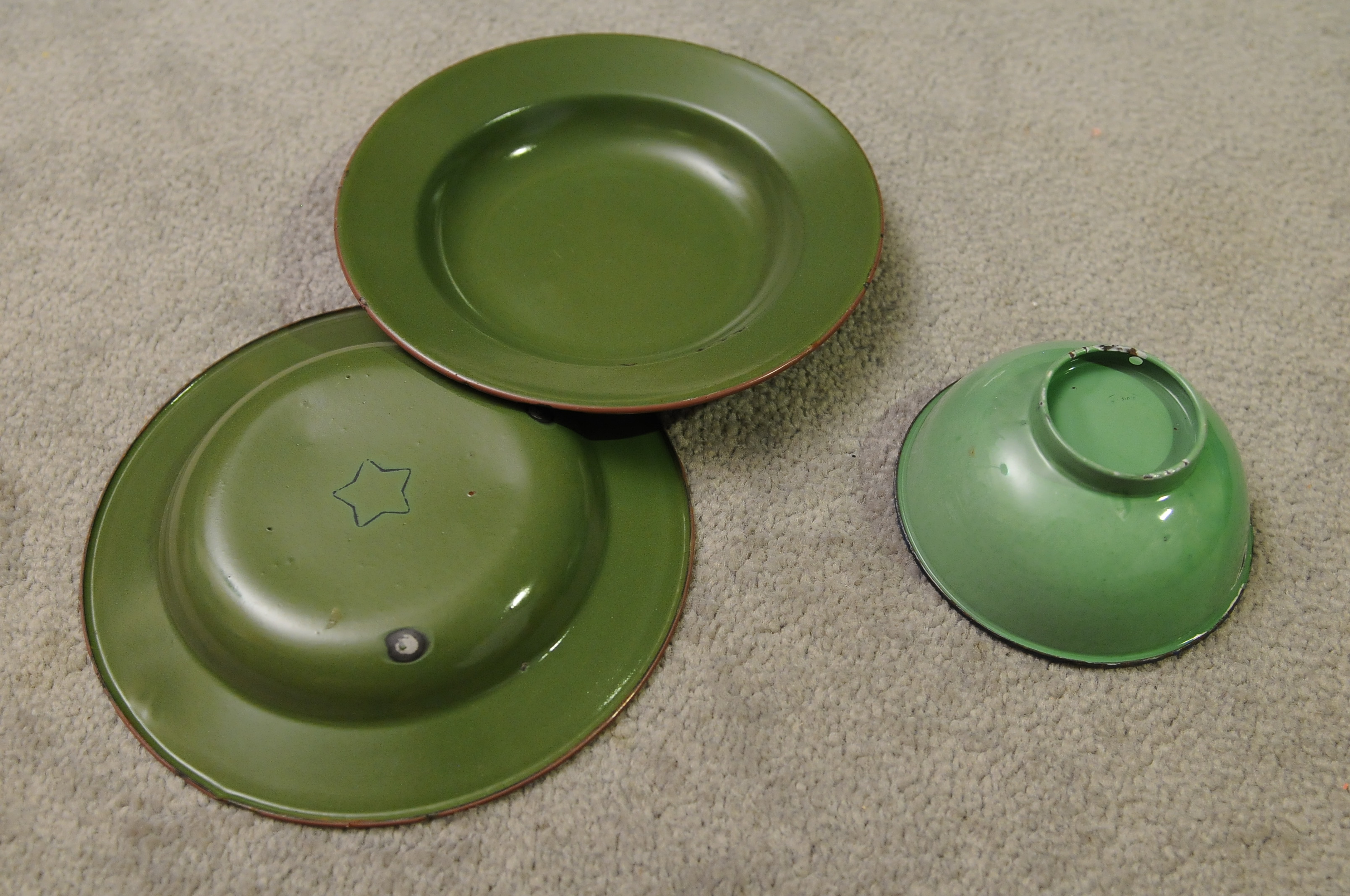 SOLD - USMC canteen set, 3rd pattern carrier, 1942 dated black enamel canteen